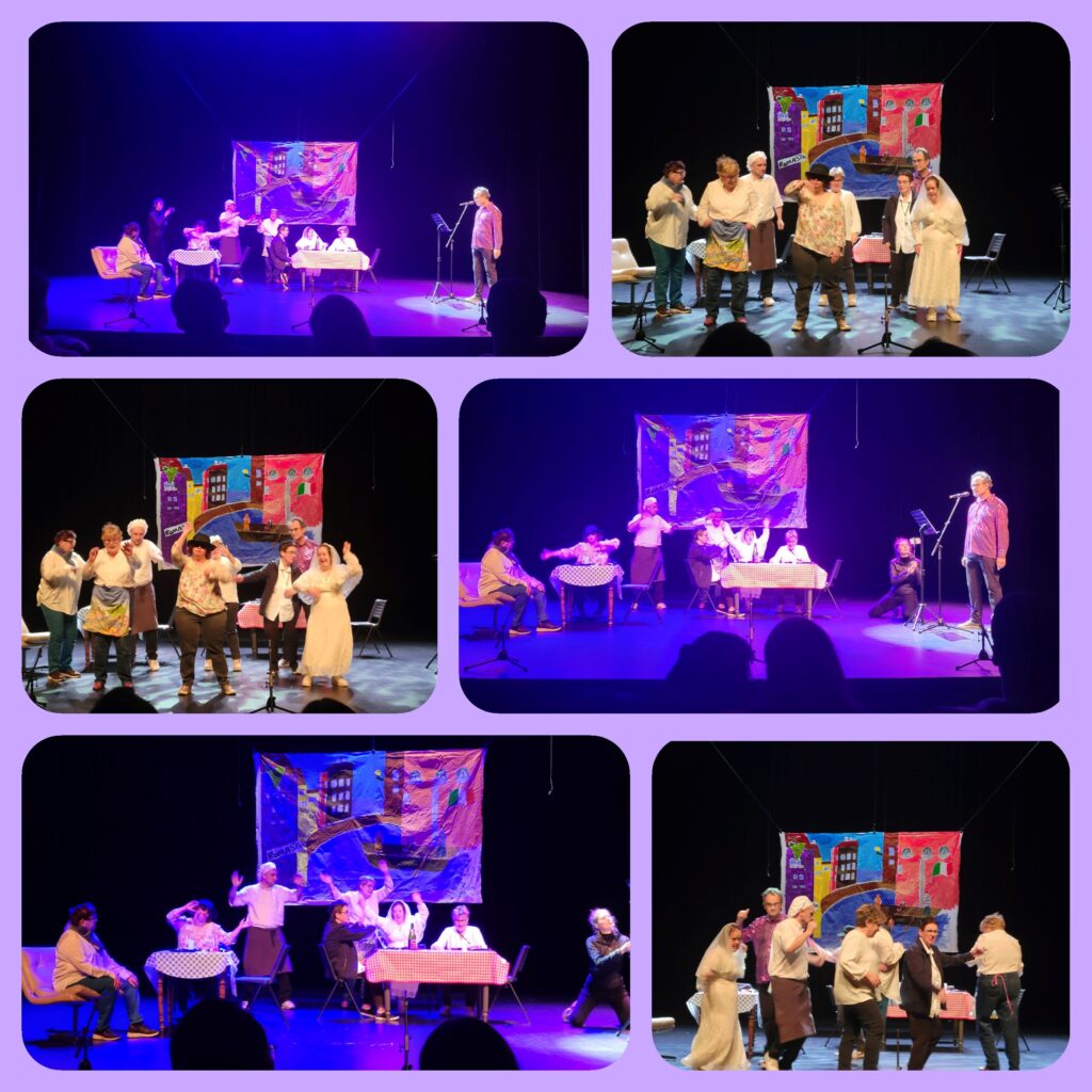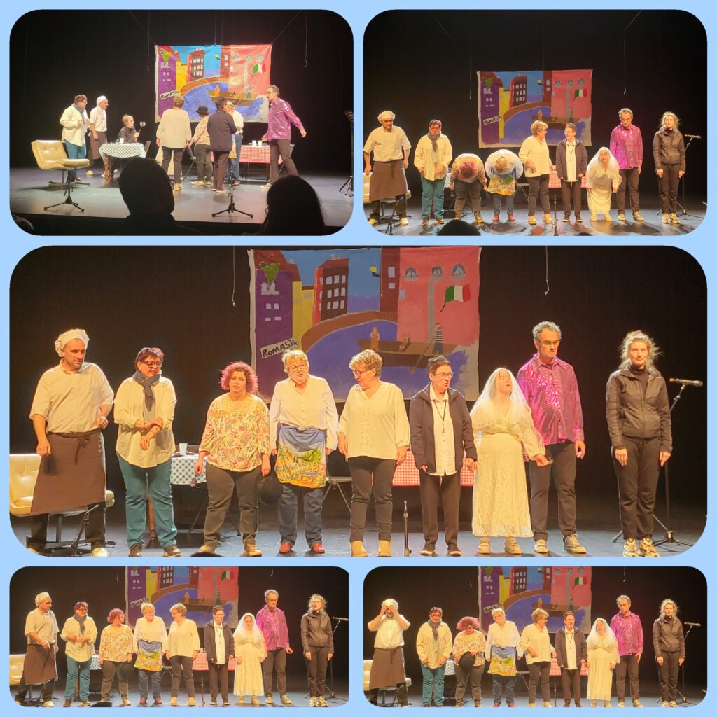 A l’occasion de la cérémonie de clôture de la Ville en Partage, la troupe de Méli-Mélo menée par Clarisse SELLIER est montée sur la scène de la Comète pour présenter son tout dernier spectacle, une très belle surprise pleine d’humour, de sensibilité et d’audace ! Nos actrices et acteurs ne se sont pas laissés impressionner par la présence d’un public venu nombreux et qui les a chaleureusement applaudi, conquis par leur performance ! Mention spéciale pour le décor de fond réalisé par un adhérent de l’Atelier Art thérapie de Méli-mélo.