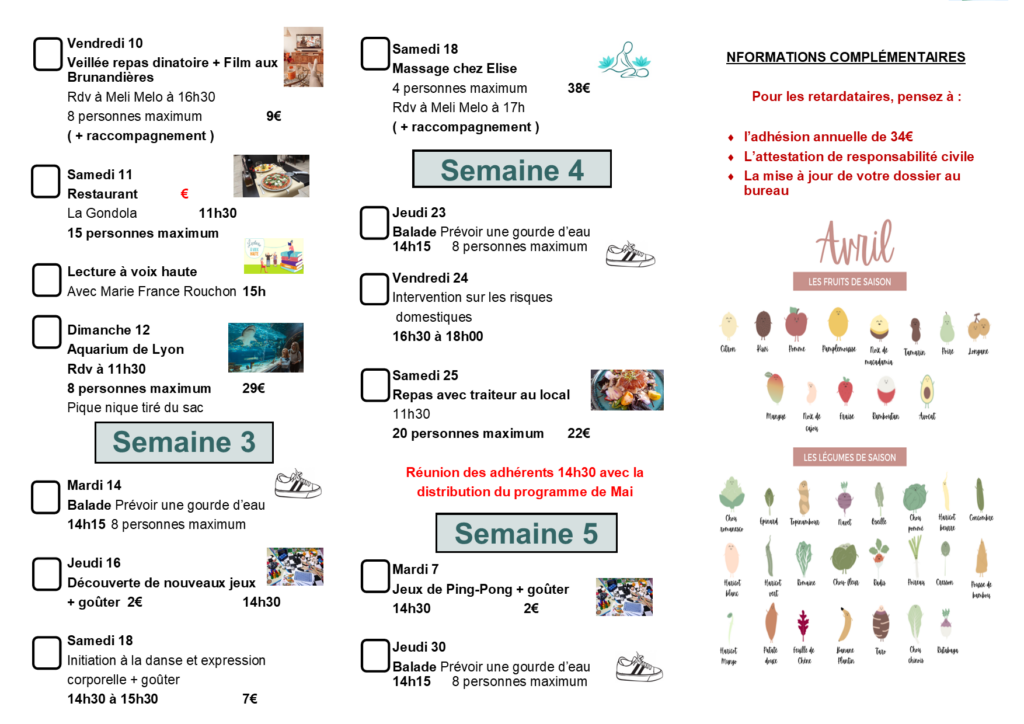 Les inscriptions sont réservées aux adhérents* et se font directement au local en présence d’un membre de l’équipe qui validera les disponibilités.