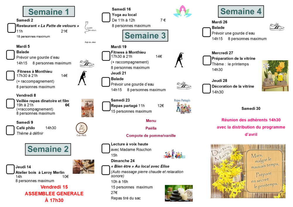 En MARS, nous fêtons le Printemps… et l’Assemblée Générale !